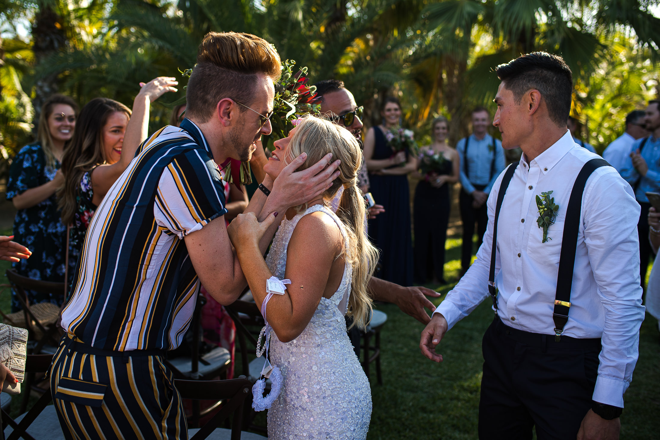 In their own words: "Tucked in the foothills of San Jose del Cabo is Acre, a lush sanctuary set on 25 acres of abundant greenery"… Undoubtedly, an excellent backdrop for an authentic, relaxed, intimate, and meaningful spring wedding in Los Cabos! Because, it is true that between the variety of wide places surrounded by vegetation, and the unique personality of this place; It turned out to be the perfect venue for a hot spring day in Baja, for this bunch of peculiar and adventurous travelers.