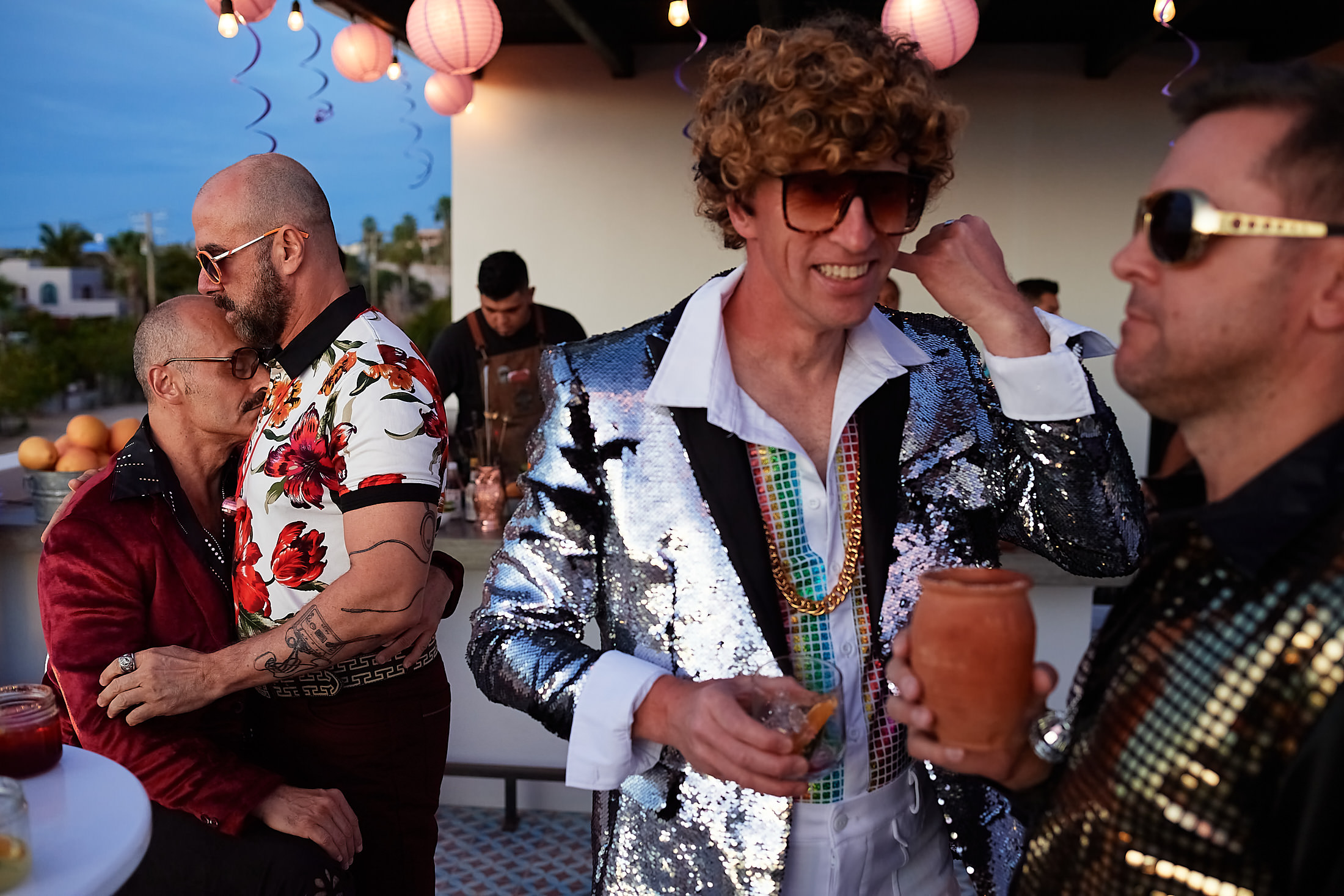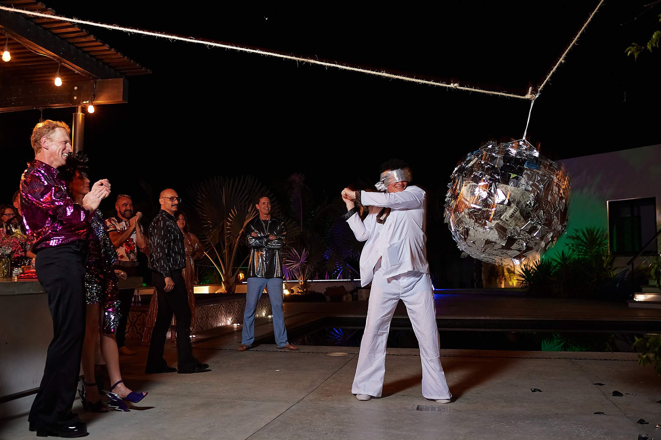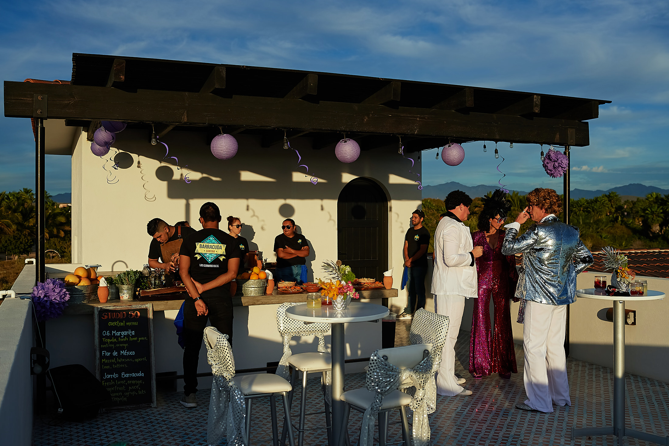 With great lighting, fun music, outrageous costumes, delicious food, and retro decorations, this boogie party was held at Villa Hope in Todos Santos, decked out like the legendary nightclub.